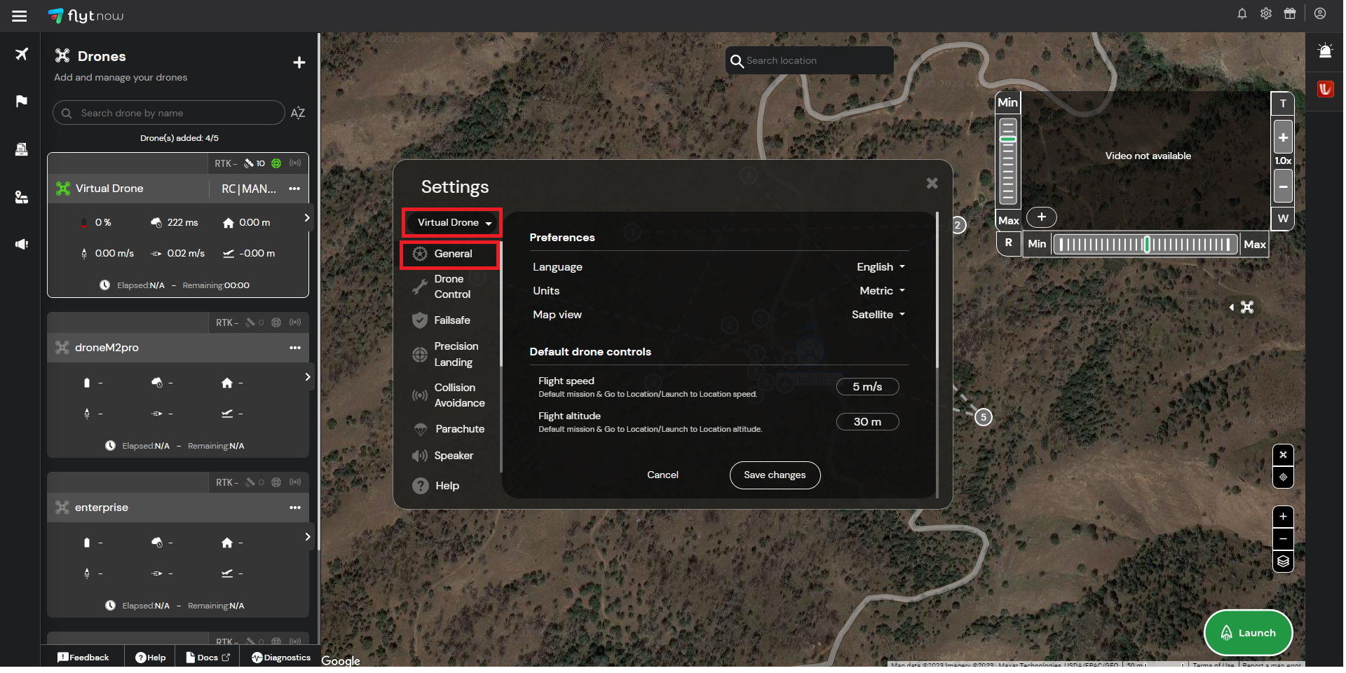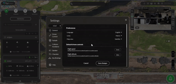 * In **Settings**, select a drone from the drop-down box at the top left corner of the settings. Then select **generals**.