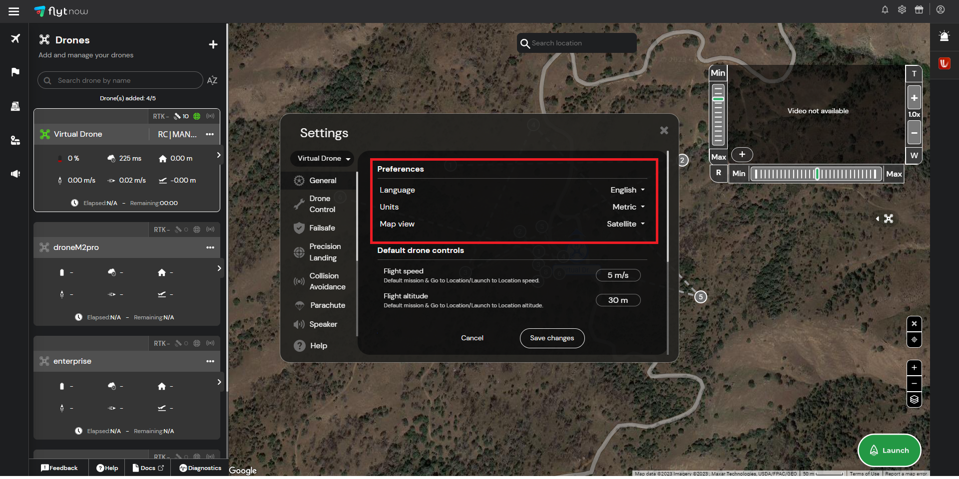 * Operators can customize their FlytBase dashboard by accessing selecting their preferred language, units of measurement, and map view to optimize their dashboard experience.